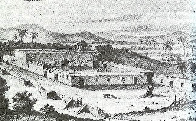 Dibujo antiguo de la misión de Loreto