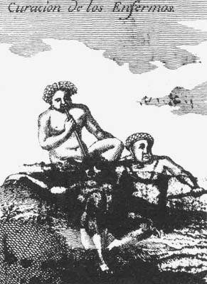 Doctores o hechiceros succionando con una caña el mal que aqueja a un enfermo