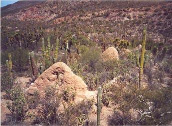 La isla carece de aguajes o arroyos, las lluvias son muy raras y reducidas, pero aun así en algunos lugares hay cactus y zacates propios del desierto sonorense, ratones, murciélagos, y reptiles como lagartijas y víboras. ↩︎