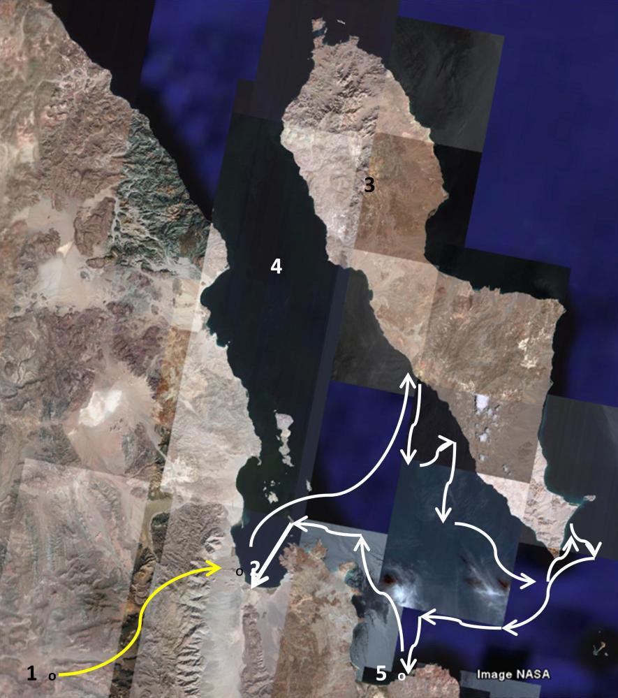 Aun aceptando la veracidad de lo dicho por Mathes, el San Luis de esta parte del diario de Linck debe haber estado casi equidistante de los dos litorales, o al menos su zona de influencia, pues el misionero menciona el arroyo San José como una potencial fuente de agua para pastorear ganado, y este arroyo nace casi por donde pasa la Carretera Transpeninsular y desemboca en el Océano Pacífico. Además, el Dr. Ives, investigador frecuentemente citado por Burrus, consideró que el San Luis de Linck estaba en o muy cerca de Jaraguay, aproximadamente a los 29° 37’ de latitud norte; el arroyo de ese nombre se dirige al Océano Pacífico. Es muy probable, entonces, que el citado lugar coincida con el San Luis actual que está en la Carretera Transpeninsular ↩︎