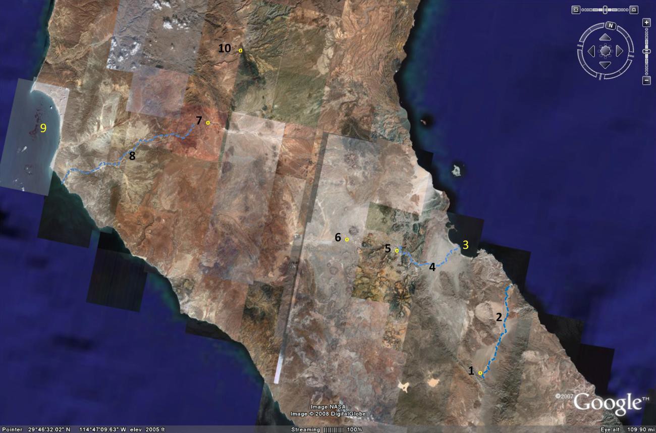 San Borja tiene a su oriente a Bahía de los Ángeles, a medio día de camino. Barco, Op.cit., p. 296. ↩︎