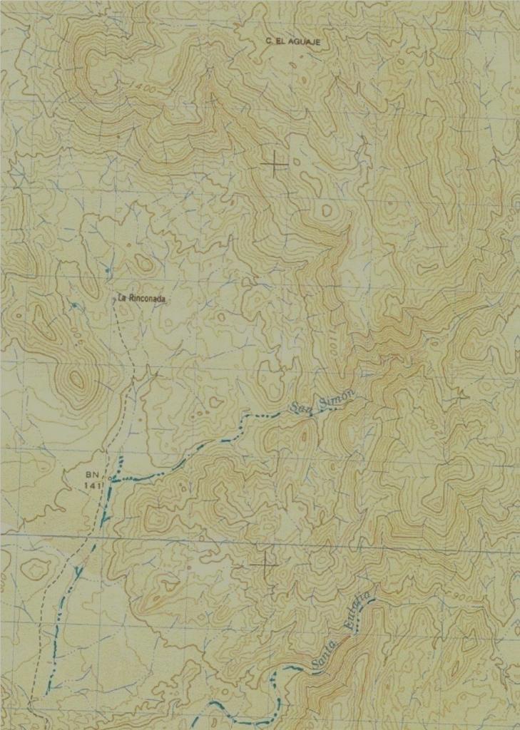 En la primavera de 1753 según Barco22, o en los meses de junio y julio de 1753, según Zevallos23, a solicitud del visitador Agustín Carta el padre Consag, a los cincuenta años de edad, acompañado nuevamente por el capitán del presidio de Loreto Fernando Javier de Rivera y Moncada y un buen número de indios y soldados, hizo una tercera exploración hacia el norte de la península, comenzando ahora por el lado oriental de la sierra de Calmallí y tomando el rumbo norte noreste. Después de algunos días de camino arribaron a Bahía de los Ángeles, en donde ya Consag había tocado tierra en su exploración de 1746 y fueron recibidos bien por los nativos, tanto así que en una ranchería abrieron un camino por el terreno quebrado de un lomerío, con el fin de que el padre no tuviera tantas dificultades a su paso; prosiguieron hacia el noroeste, y en un lugar situado más o menos a los 29° 25´ de latitud norte24 cerca del monte Yubai y a unos 25 Km. de la costa, encontró un manantial que brotaba abundante del paredón de piedra y bajaba hasta el arroyo, que los indios llamaban “Calañujuet” o “Calagnujuet”, castellanizado el nombre como Calamajué, con gran cantidad de carrizos y tule. Cuando los hombres se acercaron a beber algo de agua, la encontraron de muy desagradable sabor, por lo que se abstuvieron de ingerirla. Sin embargo, cuando menos al principio, se creyó que acarreando de unas pozas cercanas el agua que sí era potable, podría plantarse allí una misión. Esta sería fundada tres años después, aunque su duración sería breve por la falta de agua buena.