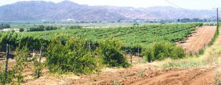 El microclima de Valle de Guadalupe, seco y cálido pero con la influencia de la corriente de California que desciende paralela a la costa occidental de la península, es quizá el más favorable en México para el cultivo de la vid. Una amenaza potencial para la agricultura de Valle de Guadalupe es el posible descenso de las aguas del acuífero de la región, del cual se conduce agua a la ciudad de Ensenada para su abastecimiento. ↩︎