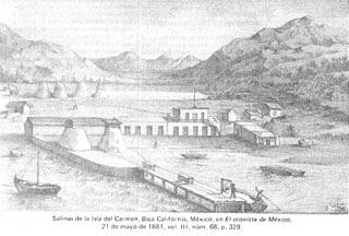 Salinas en Isla del Carmen, explotadas desde 1881, aprovechando las facilidades otorgadas por el gobierno.