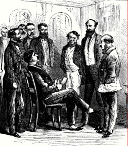 Don Antonio Pedrín, Jefe Político de Baja California, recibiendo al Profr. Grabb y Mr. Brooks.