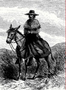 Vaquero o ‘mozo’ del sur dela península. Obsérvense las amplias chaparreraspara protegerse de las plantas espinosas del campo; casi todo su atuendo era de piel.