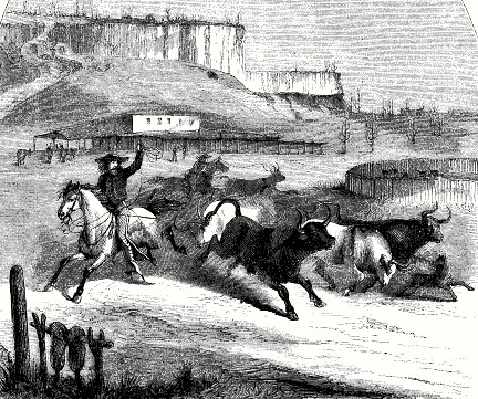 Abajo, vaquero arriando ganado en el Rancho Colorado, cerca del lugar que hoy se conoce como Las Pocitas, unos 65 Km. al norte de La Paz.Cornell University Library