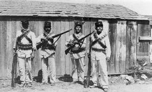 Soldados del Octavo Batallón de Infantería en el área de Mexicali. Cort. de The Journal of San Diego History y San Diego Union Tribune.