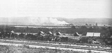 Campamento de tropas norteamericanas en San Ysidro, a la expectative durante el combate de mayo de 1911 en Tijuana. Fotog. San Diego Union Tr.