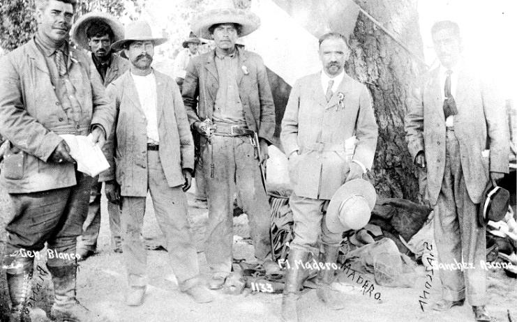 En esta fotografía se encuentra el General José de la Luz Blanco en el extremo izquierdo, y Francisco I. Madero segundo de derecha a izquierda.