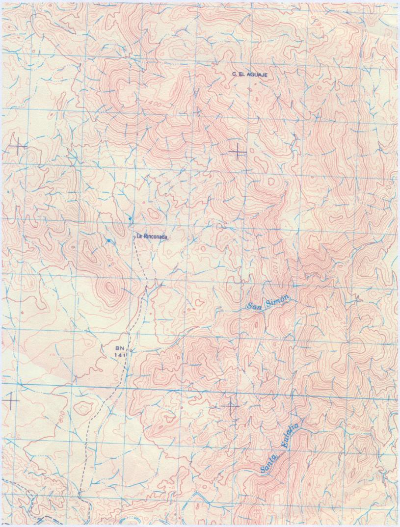 El lugar, a los 30°34’ L.N., fue descubierto por Linck cuya expedición acampó allí probablemente el domingo 16 de marzo de 1766, poco antes de cruzar la sierra hacia el este. Entre las curvas remarcadas hay desniveles de 100 m. de altura, y la distancia horizontal entre las rectas azules es de 500 m.; esto da idea de lo accidentado del terreno; obsérvense al noreste elevaciones de más de 1600 m.. Fue punto de cruce de las expediciones que después hicieron franciscanos y dominicos (INEGI)