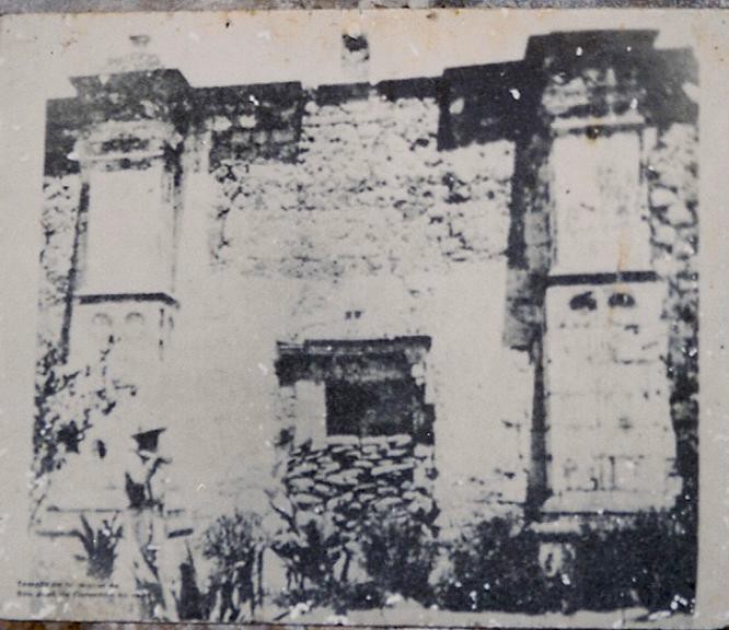 De izquierda a derecha: interior de la sacristía, hoy capilla del poblado; campana original; y fotografía antigua de la entrada de la misión, que se encuentra en el interior de la sacristía. Fotog. A. P. A.