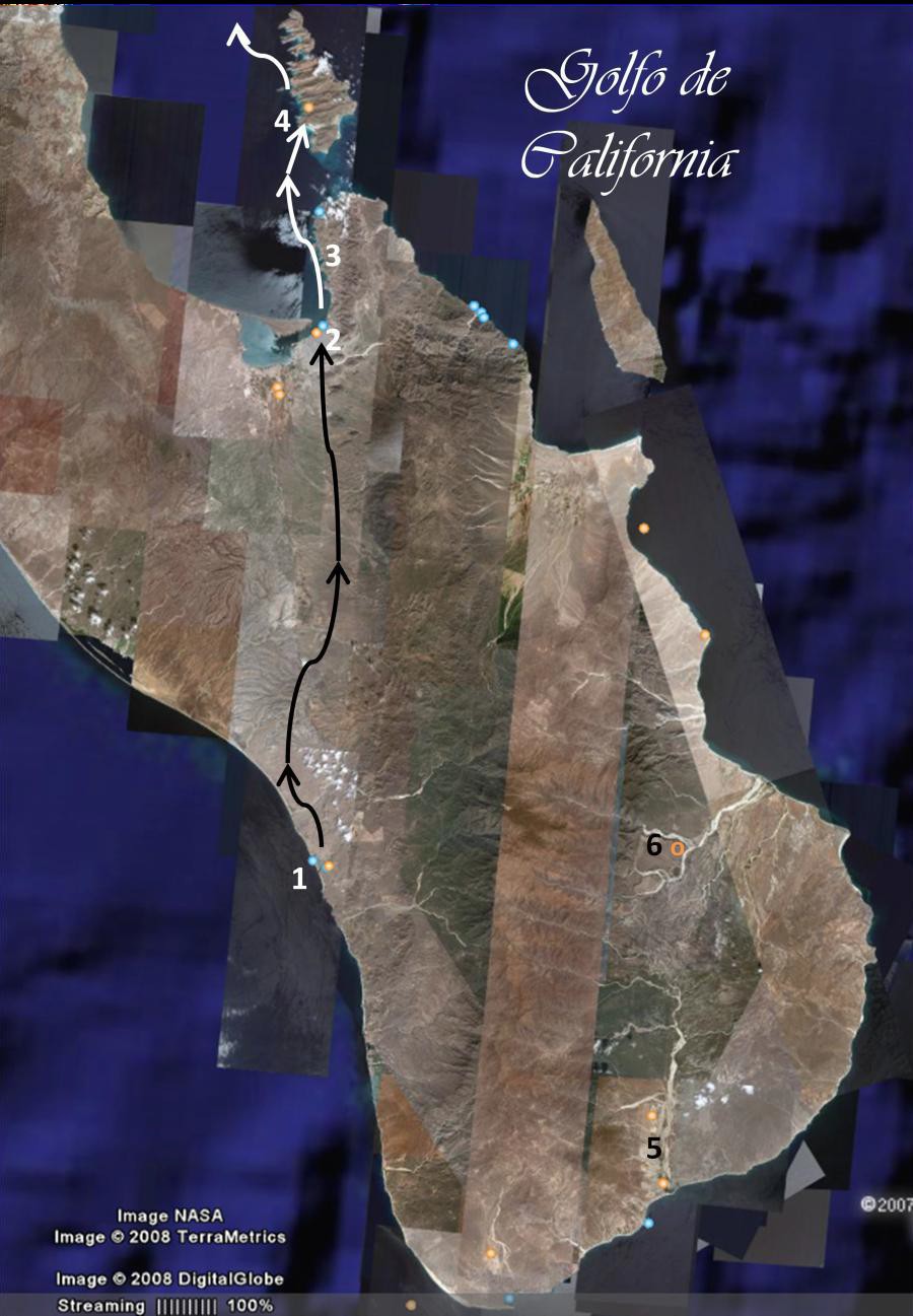 La Bahía de las Almejas forma parte del Complejo Lagunar Bahía Magdalena -Almejas, por lo que es justificado afirmar que la expedición del padre Guillén llegó a Bahía Magdalena. ↩︎