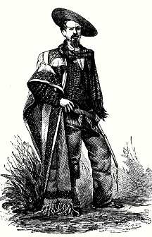 Vaquero o ‘mozo’ del sur dela península. Obsérvense las amplias chaparreraspara protegerse de las plantas espinosas del campo; casi todo su atuendo era de piel.