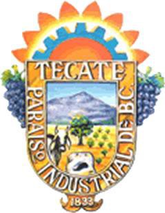 Hermoso escudo de Tecate, diseñado en 1973 por Alfonso Maya, y pintado por M. A. Camacho. De los simbolismos representativos de la ciudad destaca al fondo el Cerro Cuchumá, “Guerrero Viejo”. El número 1833 se refiere al año en que le fue entregada la concesión del rancho Tecate a Juan Bandini.