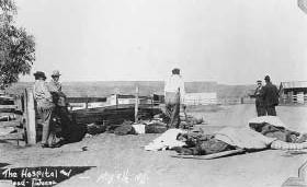 Campamento de tropas norteamericanas en San Ysidro, a la expectative durante el combate de mayo de 1911 en Tijuana. Fotog. San Diego Union Tr.
