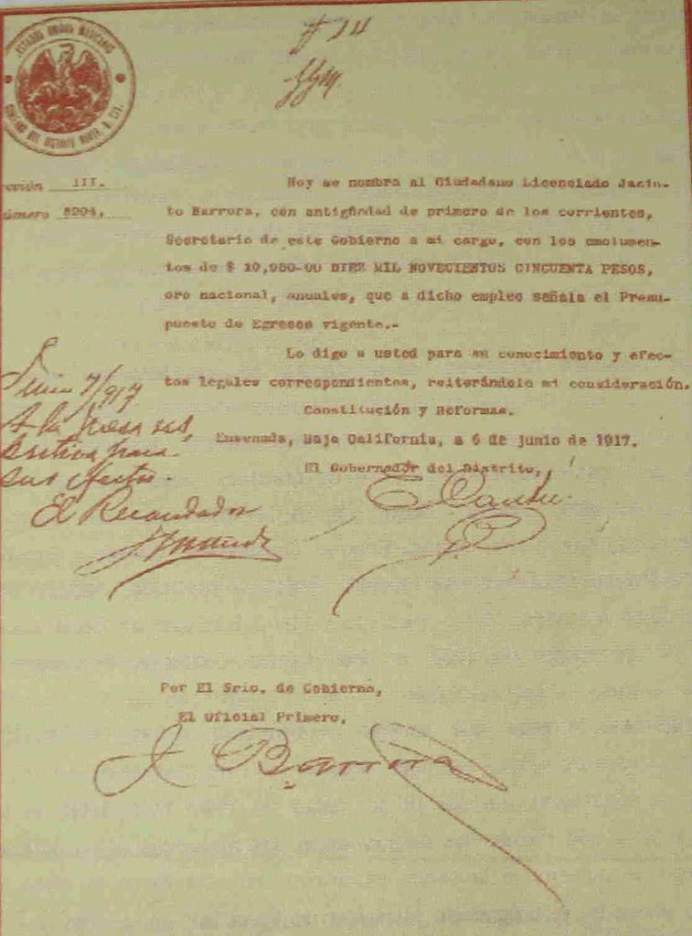 - 1914, abril. Juan Lojero es Subprefecto en Mexicali.
