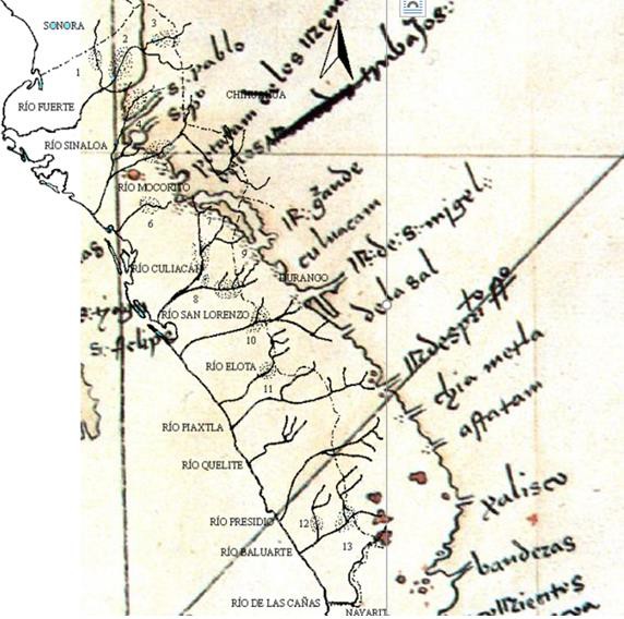 de la Sociedad Geológica Mexicana que se cita más adelante.- Río San Pablo, (podría ser lo que fue desembocadura del río Fuerte).